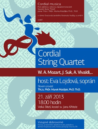 Ve Velké Bíteši se uskuteční již tuto sobotu 21. září v 18:00 koncert Cordial String Quartet. Do kostela sv. Jana Křtitele, který je častým místem konání jedinečných koncertů duchovní hudby, zavítá toto mladé smyčcové kvarteto z Třebíče se sólistkou Evou Lojdovou.